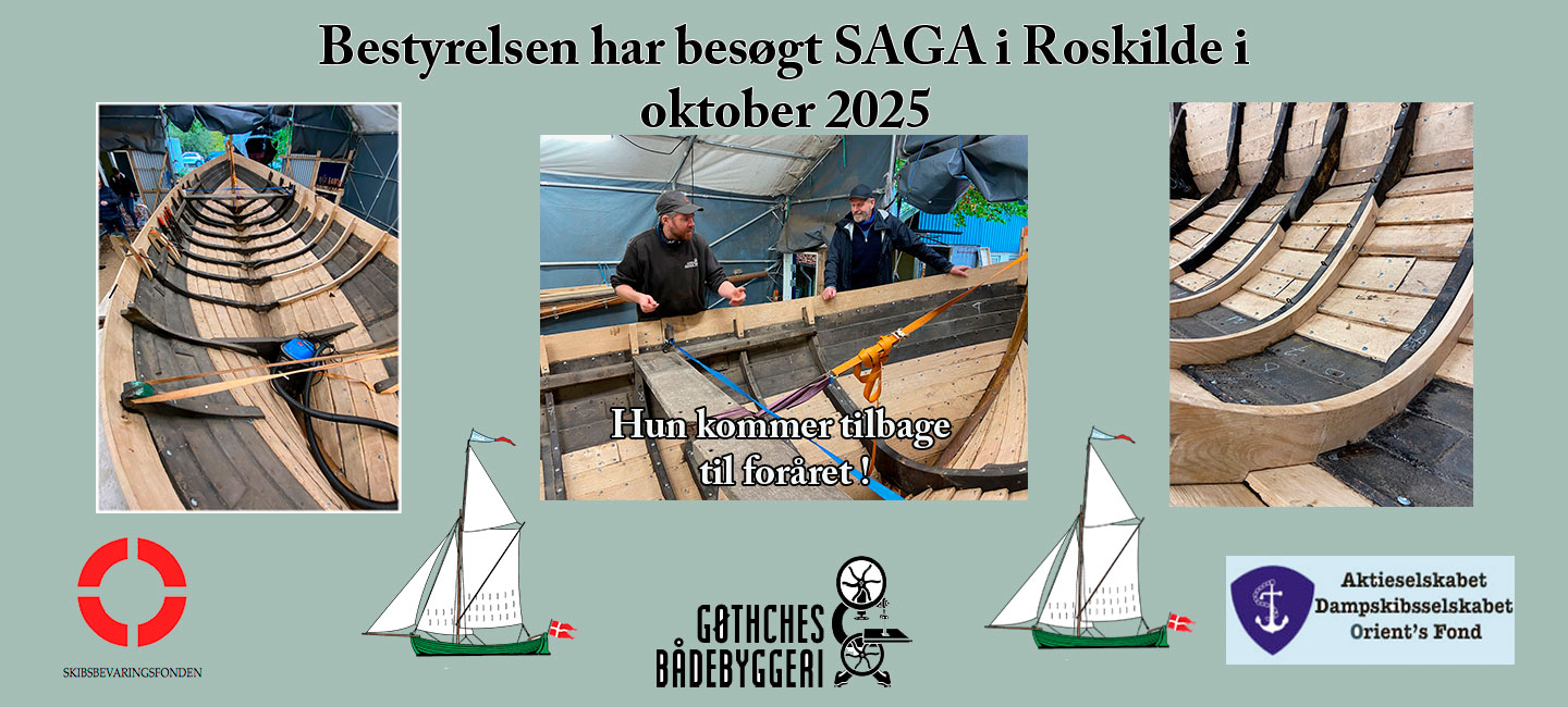 Vi kan fortælle, at SAGA er i Roskilde på Gøthchers Bådeværft, hvor hun før jul er blevet grundig gennemgået, og at hun snart påbegynder den store restaurering. Vi forventer at have hende tilbage i havnen til oktober 2025,