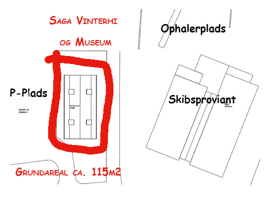Tegning over placeringen af bygningen….